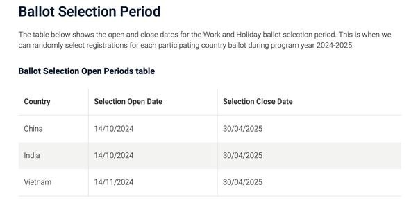 Ngày 25/09/2024, Chính phủ Úc đã chính thức công bố các thông tin chi tiết về thời gian mở/đóng...