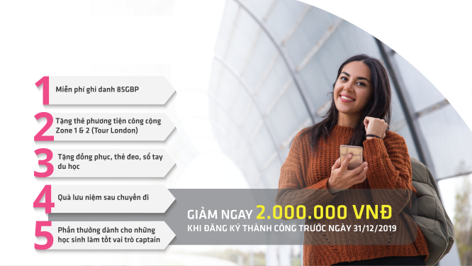– Hoạt động ngoại khóa phong phú sau mỗi giờ học, tham quan các địa điểm nổi tiếng, trải nghiệm thiên nhiên hoang dã … tại 2 điểm đến London và Brighton theo lịch trình đã chọn.