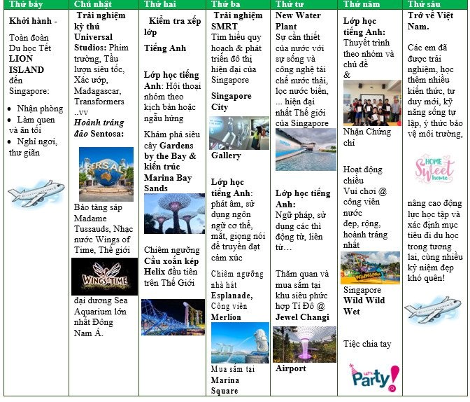 – Chúng tôi có hơn 17 năm kinh nghiệm tổ chức chương trình du học ngắn hạn cho học sinh Việt Nam tại Singapore.