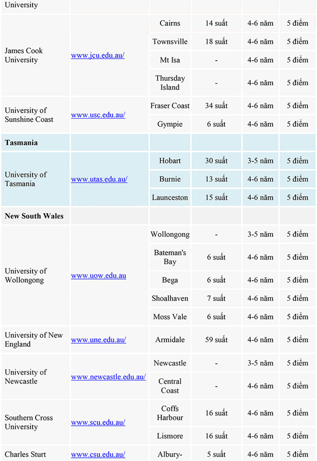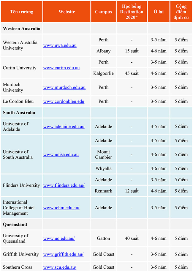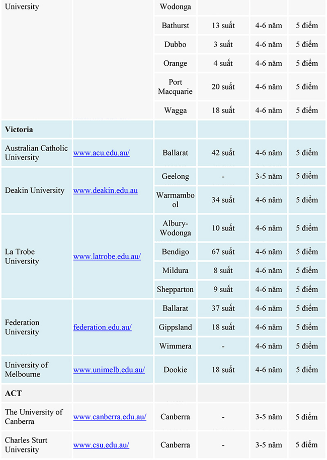 * Bảng trên chỉ liệt kê các suất học bổng Destination Australia có dành cho SV quốc tế